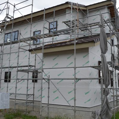 こんにちは。 昨日の日曜は、建築現場にてお客様と打合せでした。 逆走台風の心配もあり、足場の養生シートもはずされて 建物の外観が良く分かるようになっていました。 今回打合せしたのは、主に電気配線です。 コンセントの位置の確認や照明器具のタイプや取付位置。 その他にも内装の確認。 実際に建てて...